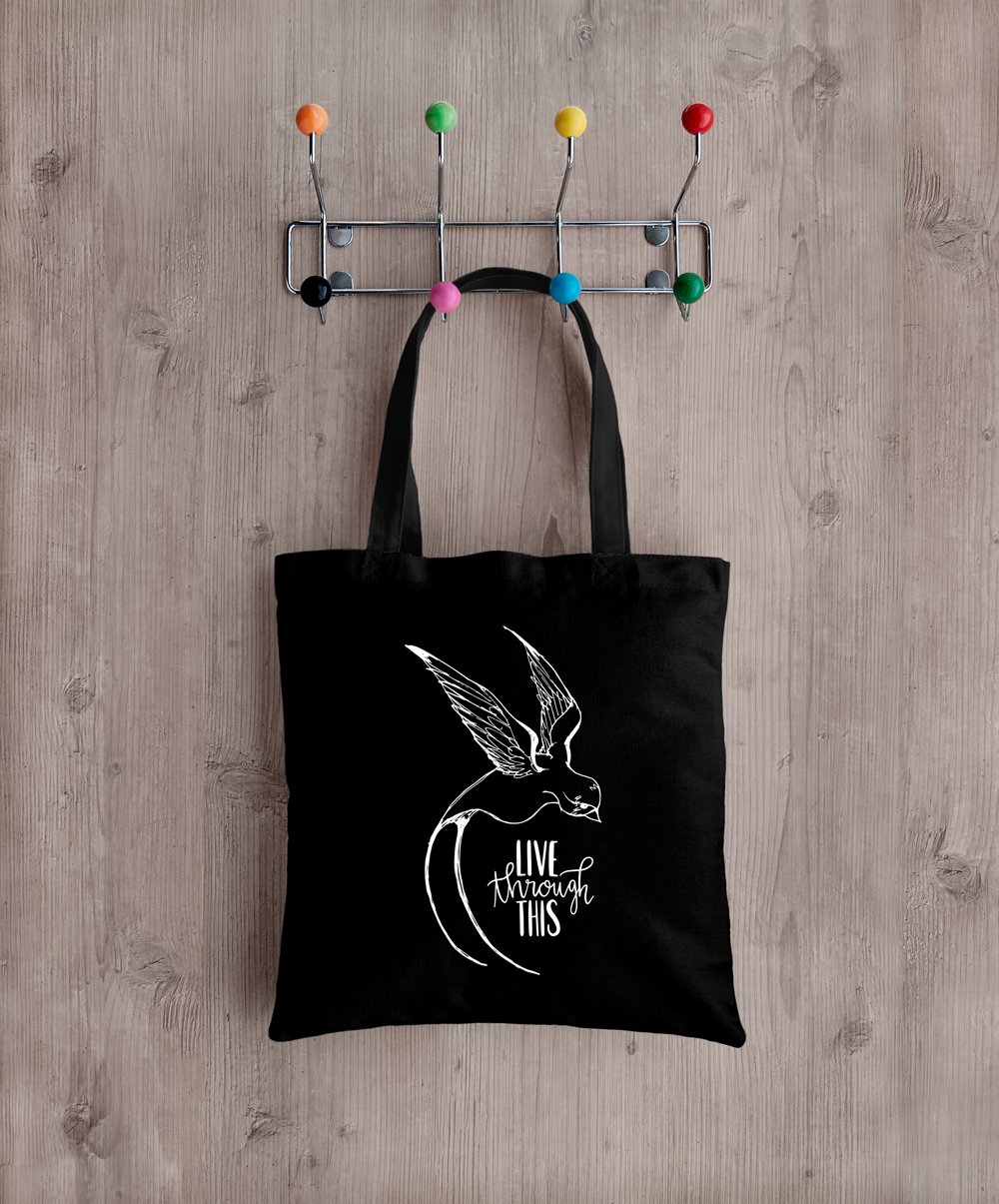 This Live Through This logo tote is walking activism!