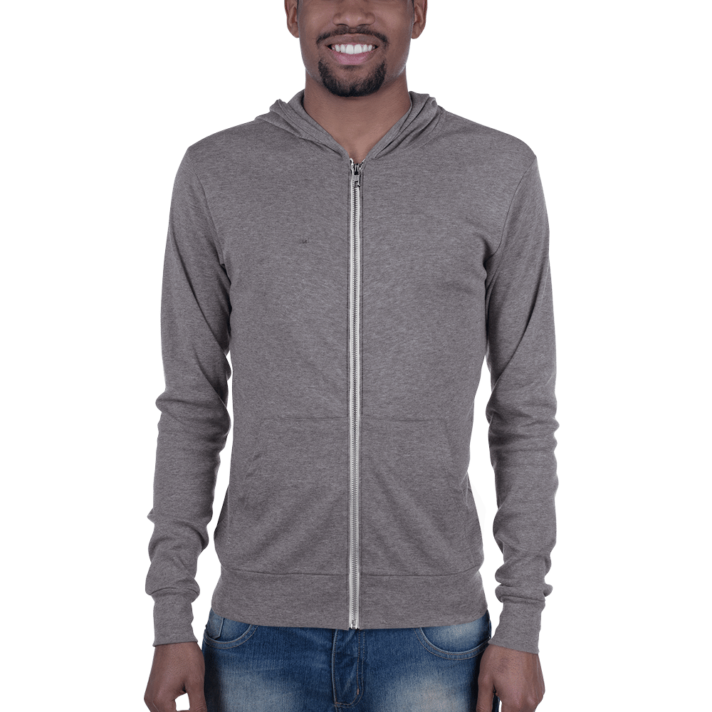 Bella + Canvas lightweight unisex zip hoodie is blank in the front with the Live Through This Freestyle Logo on the back. Hoodie made of 50% polyester, 25% airlume combed and ring-spun cotton, 25% rayon. B+C suggests folks with broader shoulders order a size up from their standard size.