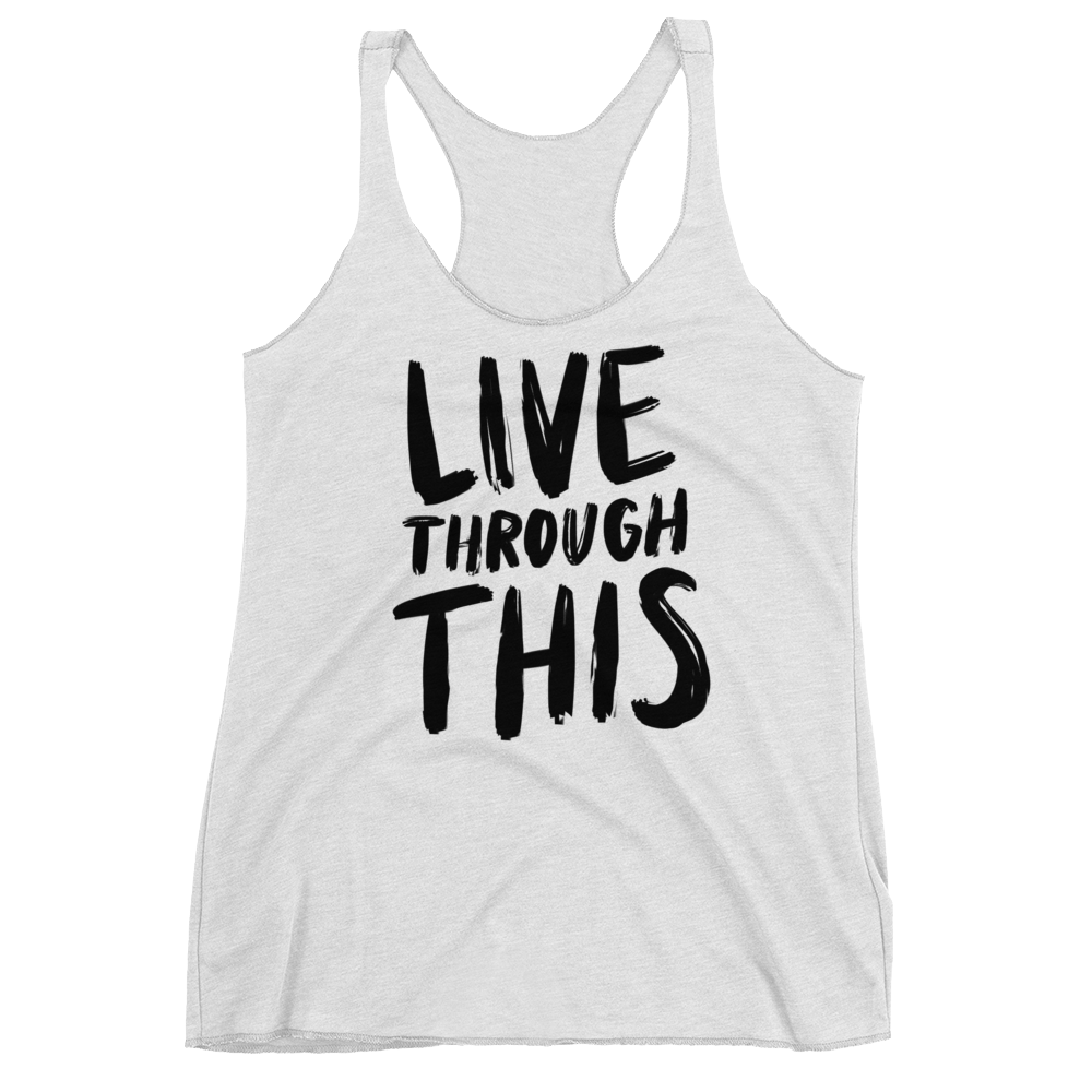 Wanna make a bold statement? This Live Through This Brushstroke Racerback Tank is the way to go.